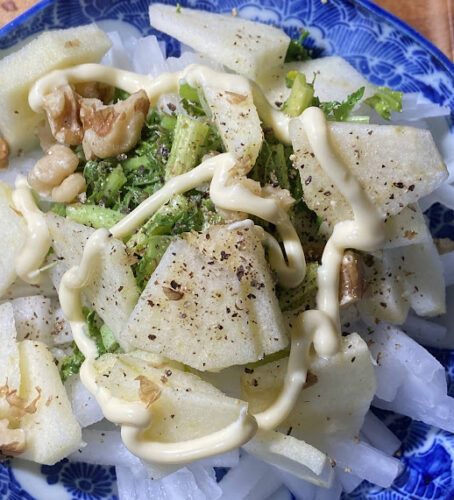 っていうか、サラダは朝の習慣なのですが。ようやく大好きなりんごの初物が出回ってきました。