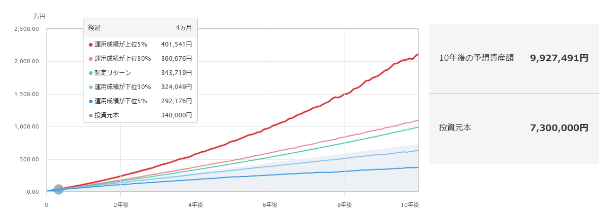 こちらはいつもの、三菱アセットマネジメントさんで試算したもの。
